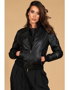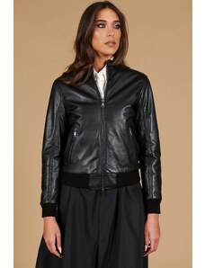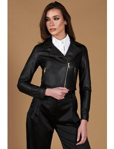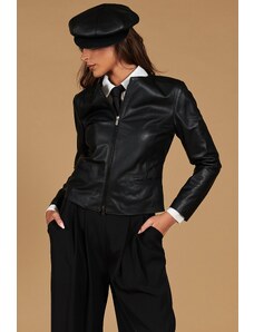 Giacca corta bolero in pelle nera girocollo nappa effetto liscio D'Arienzo