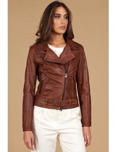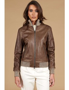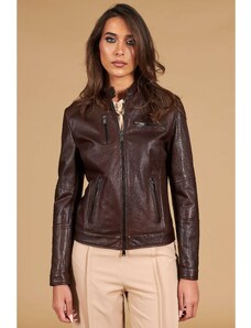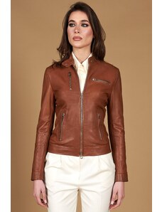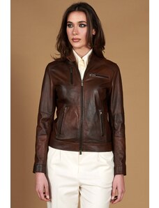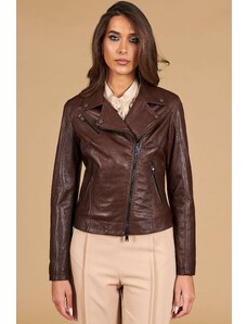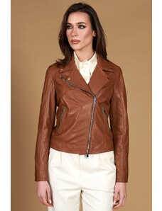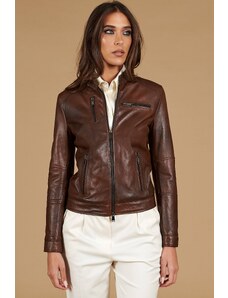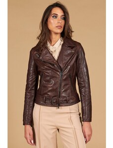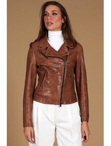 Giacca biker in pelle naturale marrone effetto liscio D'Arienzo