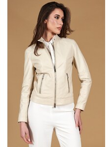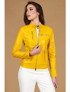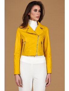 Giacca corta in pelle naturale gialla stile chiodo D'Arienzo