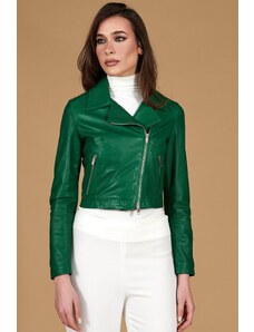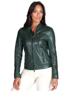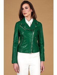 Giacca chiodo in pelle naturale verde effetto liscio D'Arienzo