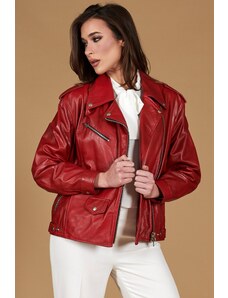 Giacca chiodo in pelle colore rosso ancora effetto liscio D'Arienzo