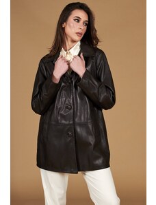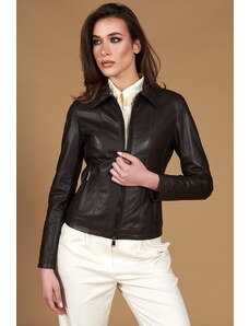 Giacca in pelle naturale testa di moro effetto liscio colletto camicia D'Arienzo