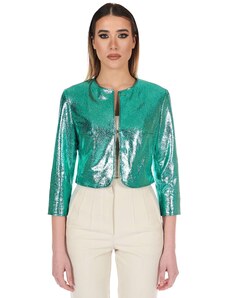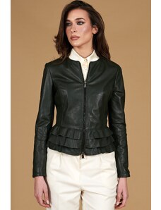 Giacca in pelle naturale verde con balze effetto liscio D'Arienzo