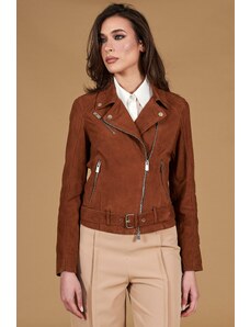 Giacca in montone scamosciato color cuoio versione corta D'Arienzo