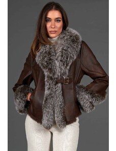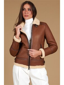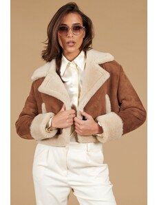 Solada Giacca Biker Da Donna Scamosciata Con Colletto In Pelliccia Sintetica Giacconi e Giubbotti Marrone Taglia S