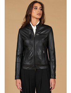 Giacca biker in pelle nera nappa effetto liscio quattro tasche D'Arienzo