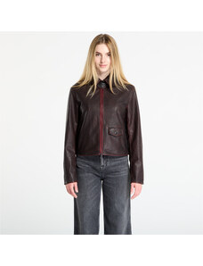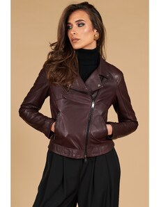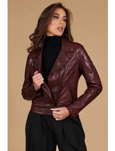 Giacca biker in pelle vegetale colore vinaccio effetto vintage D'Arienzo