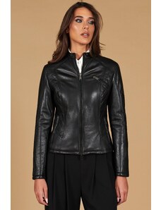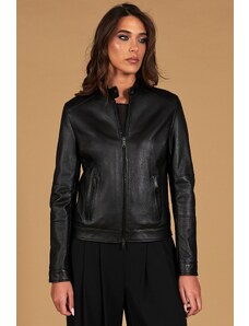 Giacca in pelle nera nappa effetto liscio colletto coreana D'Arienzo
