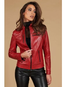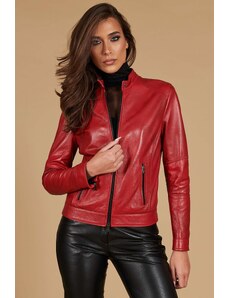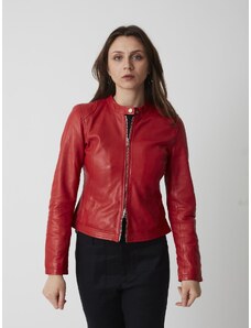 Giacca biker in pelle naturale rosso ancora effetto liscio D'Arienzo