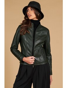 Giacca in pelle naturale verde effetto liscio colletto coreana D'Arienzo