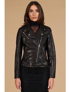 Giacca biker in pelle nera nappa effetto liscio D'Arienzo