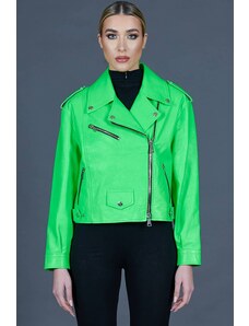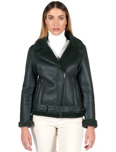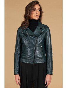 Giacca chiodo in pelle naturale verde cerniera trasversale D'Arienzo