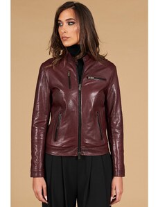 Giacca chiodo in pelle colore vinaccia effetto vintage D'Arienzo