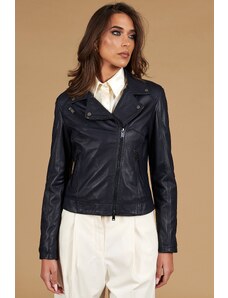 Giacca biker in pelle naturale blu avion effetto liscio D'Arienzo