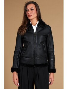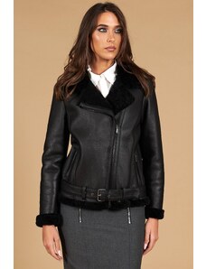 Montone shearling nero con fibbie e cerniera centrale D'Arienzo
