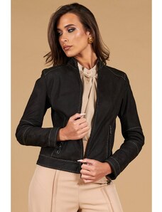Giacca in pelle nubuck testa di moro con impunture a contrasto D'Arienzo