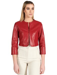 Giacca corta bolero in pelle rossa girocollo nappa effetto liscio D'Arienzo
