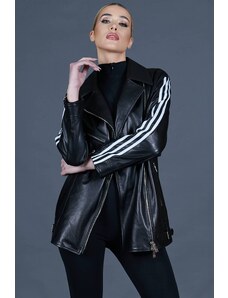 Chiodo oversize corto in pelle nera con cintura D'Arienzo