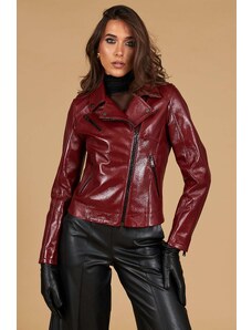 Giacca chiodo in pelle naturale bordeaux effetto liscio D'Arienzo