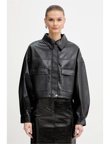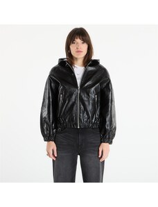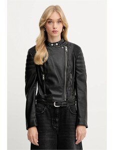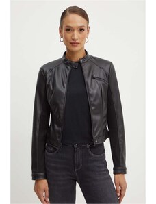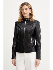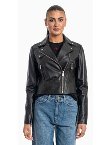 Guess giubbotto nero donna in ecopelle chiusura zip bottoni con logo