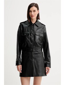 Giacca in pelle nera nappa effetto liscio colletto camicia D'Arienzo