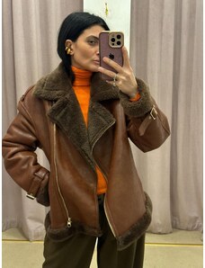 New Collection Giacca Corta Teddy Oversize Giacconi e Giubbotti Donna Marrone Taglia Unica