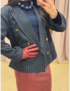 Giacca blazer in pelle blu due bottoni nappa effetto liscio D'Arienzo