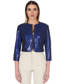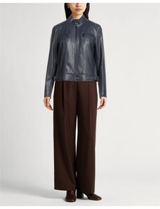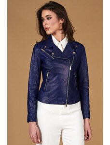 Giacca biker in pelle naturale bluette effetto liscio D'Arienzo