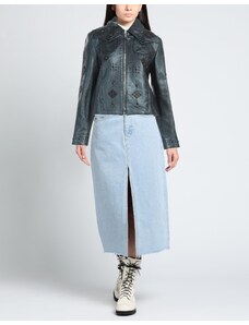 Giacca chiodo in pelle naturale bluette cerniera trasversale D'Arienzo