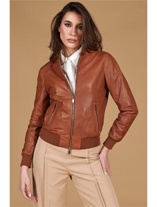 Bomber in pelle traforata color cuoio nappa effetto liscio D'Arienzo