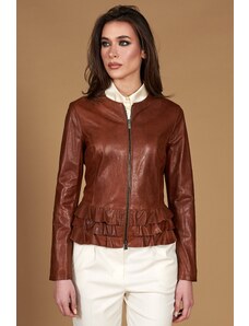 Giacca biker in pelle color cuoio effetto liscio collo coreana D'Arienzo