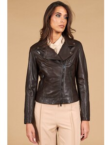 Giacca biker in pelle testa di moro effetto liscio D'Arienzo