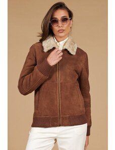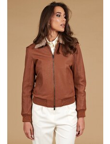 Bomber in montone scamosciato color cuoio colletto a contrasto D'Arienzo