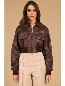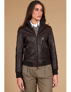 Bomber in pelle testa di moro versione corta effetto vintage D'Arienzo