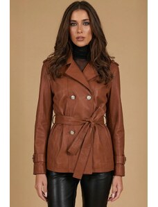 Chiodo in pelle cuoio con cintura effetto vintage D'Arienzo