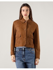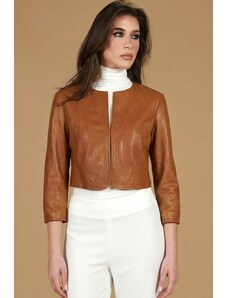 Giacca corta bolero in pelle cuoio girocollo effetto vintage D'Arienzo