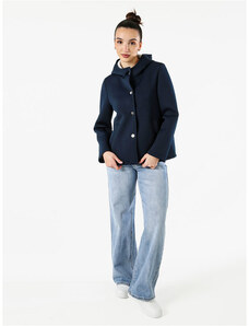 Solada Giacca Da Donna In Panno Con Bottoni e Cappuccio - Blu Scuro Leggere Taglia L