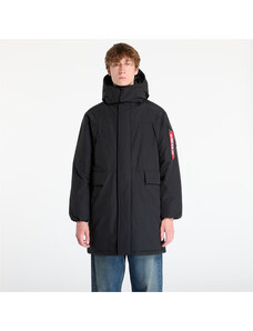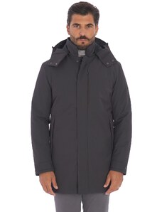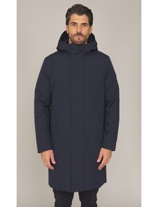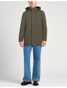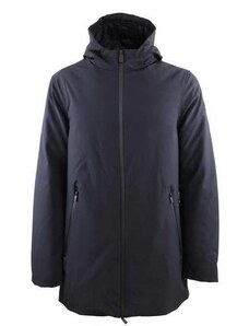 Giaccone modello parka con interno imbottito staccabile tramite zip e indossabile a parte, chiusura frontale con zip e cursore logato a doppia via nascosti e bottoni a pressione nascosti, collo alto e cappuccio fisso con coulisse regolabile, due tasche oblique frontali chiuse con zip termonastrata nascosta e pattina con bottone a pressione nascosto, polsini in jersey su intero manica, cinturino regolabile con bottoni a pressione applicato su fondo manica, logo effetto gommato applicato su manica