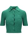 Polo Donna Polo cropped da donna firmata Gucci. Tessuto principale realizzato in 55% viscosa, 28% fibra metallizzata, 16% polliamide e 1% elastan. Rifiniture realizzate in 57% viscosa, 26% fibra metallizzata, 16% polliamide e 1% elastan. Polo cropped con colletto classico a maniche... Verde Metallizzato Viscosa, Fibra Metallizzata, Poliammide, Elastan