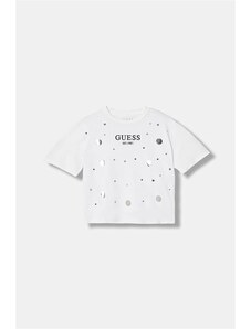 T-shirt per bambini della collezione Guess. Modello fatto di tessuti a maglia con stampa e applicazioni. Tessuto estremamente confortevole con un alto contenuto di cotone.