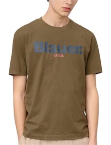 Blauer t-shirt da uomo ernst in cotone con maxi logo lettering a contrasto stampato sul davanti marrone