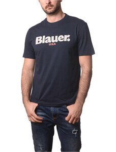 Blauer t-shirt da uomo ernst in cotone con maxi logo lettering a contrasto stampato sul davanti blu