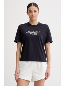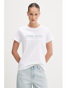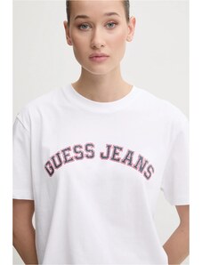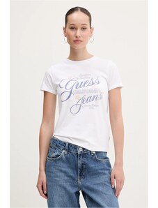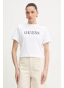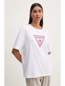 La T-shirt da donna Guess è una classica maglietta a maniche corte che valorizza lo stile individuale e offre il massimo comfort, pensata per le donne che amano la moda senza rinunciare alla comodità. Questo modello bianco, impreziosito da una vistosa stampa con logo, rappresenta la base perfetta per creare look casual ma allo stesso tempo eleganti.