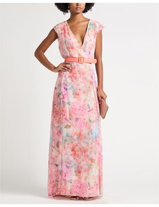 Vestito a pieghe Raso Crêpe Fantasia floreale Cintura Brand logo Collo a v Senza maniche Interno foderato Tasche Lavare a mano o a secco Non candeggiare Non asciugare in asciugatrice Dress-code elegante perfetto da damigella Da wedding-guest o per ogni occasione speciale