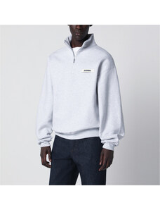 JACQUEMUS Felpa con collo e zip grigia chiara in Gros Grain