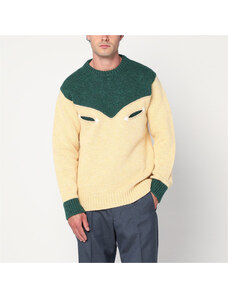 Prada Maglione color crema e verde smeraldo in lana
