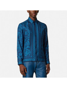 Versace Camicia slim in twill di seta stampata blu