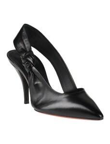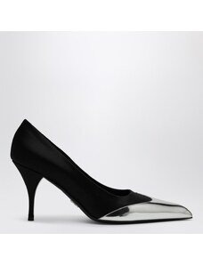 Prada Décolleté nero in raso e pelle metallizzata