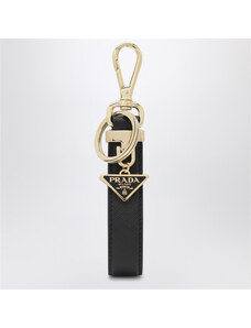 Prada Portachiavi in Saffiano nero con triangolo logo