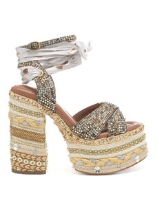 Kurt Geiger sandali alti da donna con micro strass all over e decorazioni con frange sulla parte frontale metallo